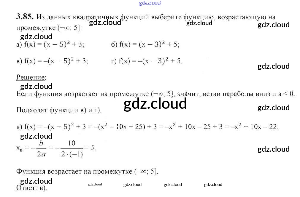 Ответ на задание 3.85 Учебник Алгебра за 8 (восьмой) класс Арефьева, Пирютко 2018 ФГОС онлайн и без номера телефона.