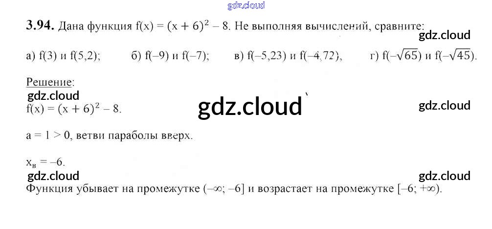 Ответ на задание 3.94 Учебник Алгебра за 8 (восьмой) класс Арефьева, Пирютко 2018 ФГОС онлайн и без номера телефона.