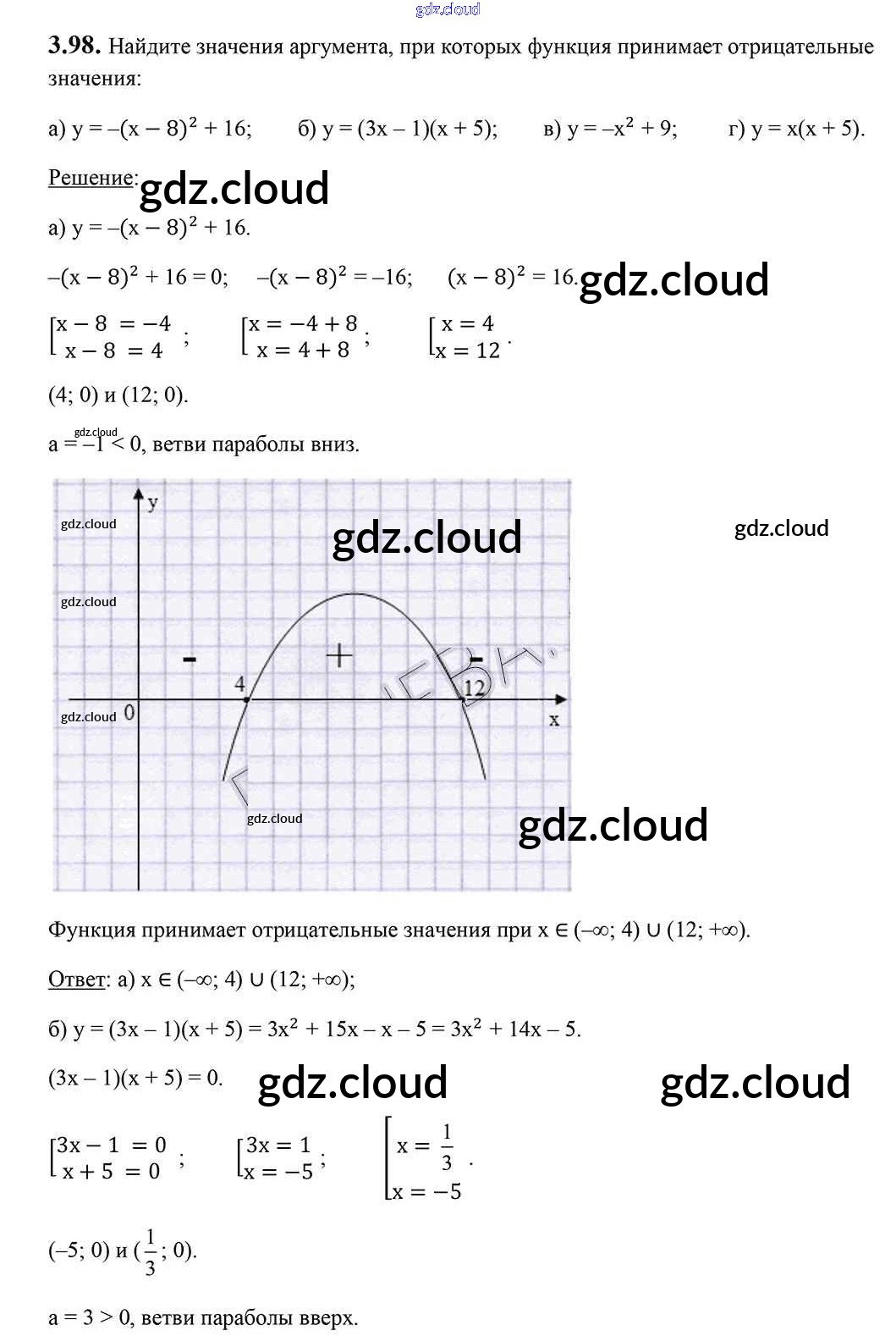 Ответ на задание 3.98 Учебник Алгебра за 8 (восьмой) класс Арефьева, Пирютко 2018 ФГОС онлайн и без номера телефона.