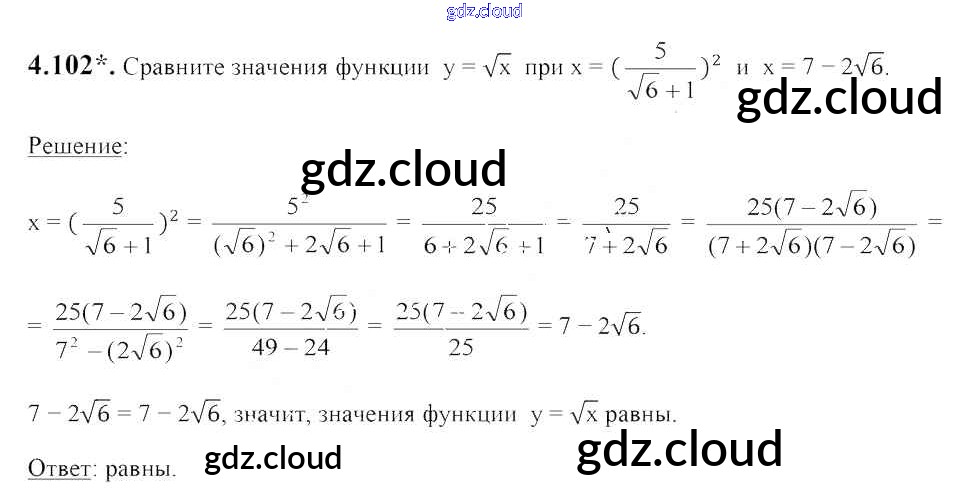 Ответ на задание 4.102 Учебник Алгебра за 8 (восьмой) класс Арефьева, Пирютко 2018 ФГОС онлайн и без номера телефона.