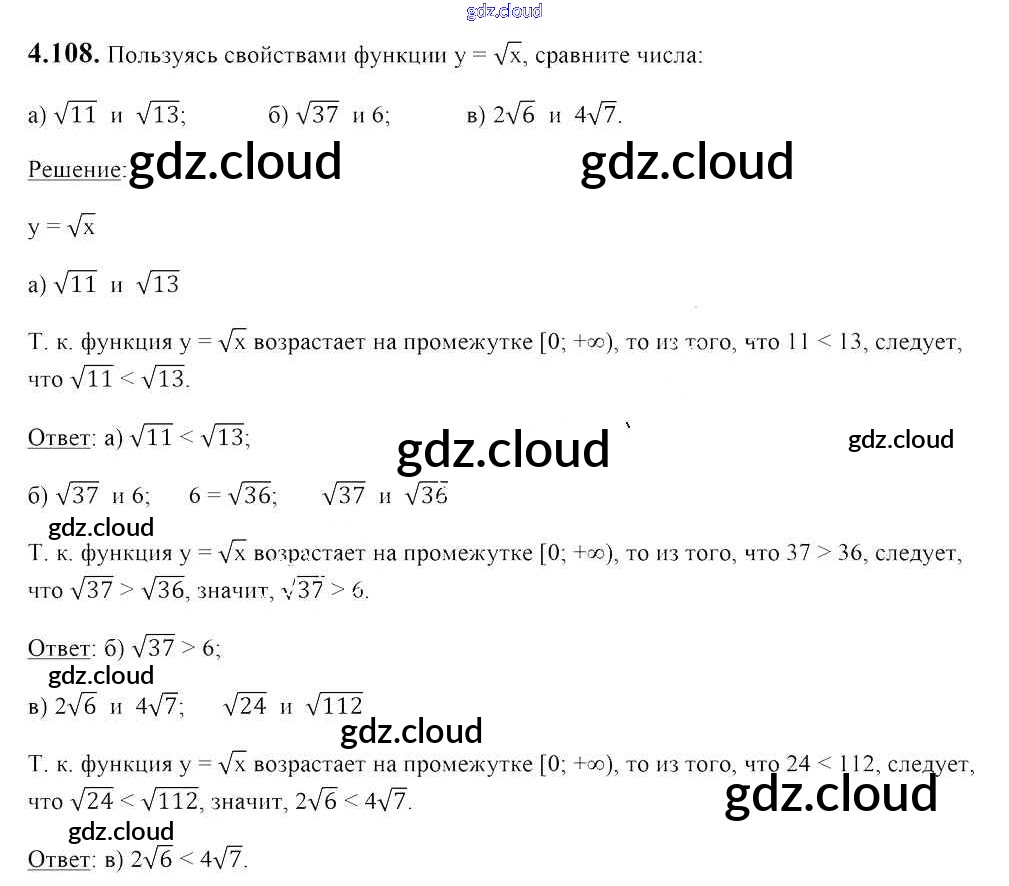 Ответ на задание 4.108 Учебник Алгебра за 8 (восьмой) класс Арефьева, Пирютко 2018