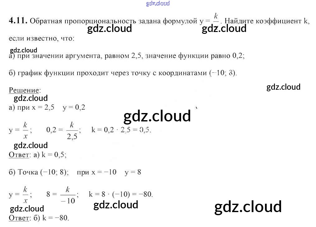 Ответ на задание 4.11 Учебник Алгебра за 8 (восьмой) класс Арефьева, Пирютко 2018 ФГОС онлайн и без номера телефона.