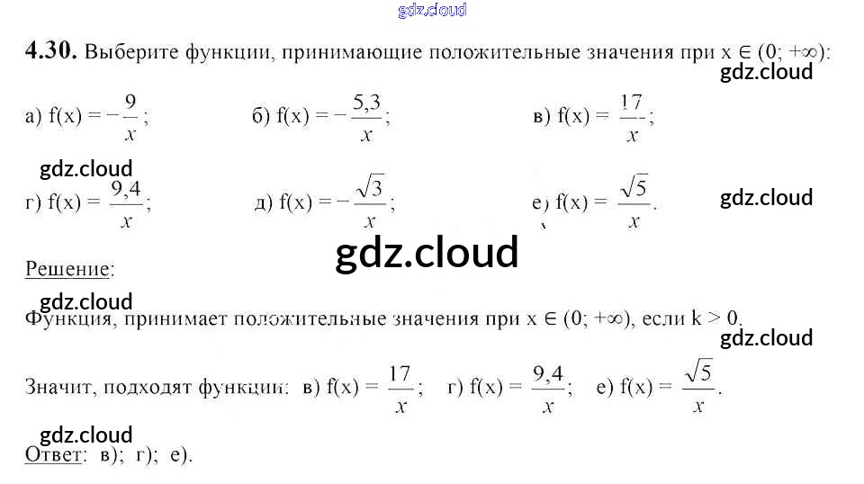 Ответ на задание 4.30 Учебник Алгебра за 8 (восьмой) класс Арефьева, Пирютко 2018