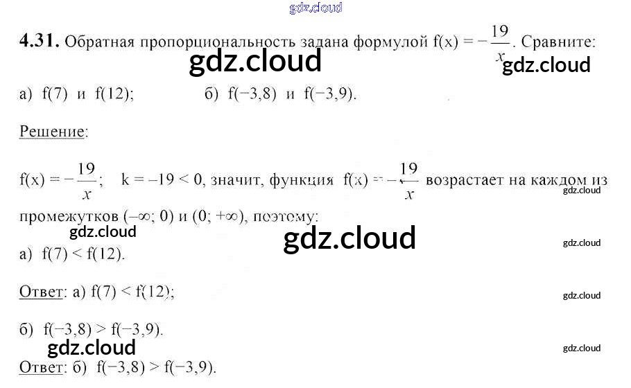 Ответ на задание 4.31 Учебник Алгебра за 8 (восьмой) класс Арефьева, Пирютко 2018
