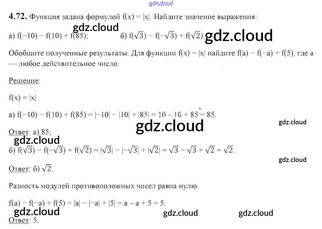 Ответ на задание 4.72 Учебник Алгебра за 8 (восьмой) класс Арефьева, Пирютко 2018 ФГОС онлайн и без номера телефона.