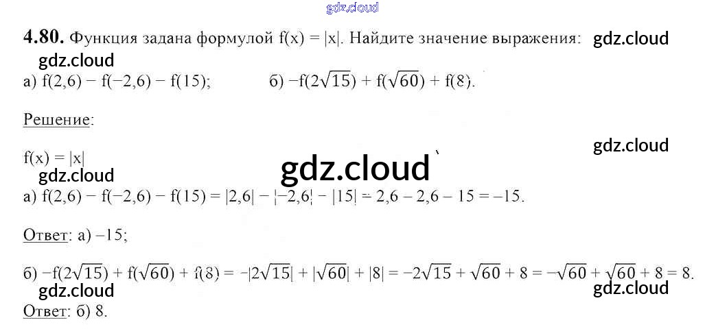 Ответ на задание 4.80 Учебник Алгебра за 8 (восьмой) класс Арефьева, Пирютко 2018