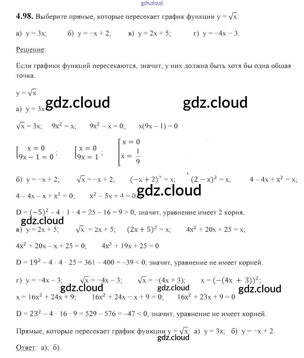 Ответ на задание 4.98 Учебник Алгебра за 8 (восьмой) класс Арефьева, Пирютко 2018 ФГОС онлайн и без номера телефона.