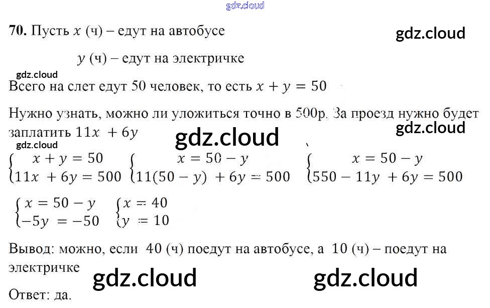 Ответ на задание 70 Учебник Алгебра за 8 (восьмой) класс Арефьева, Пирютко 2018 ФГОС онлайн и без номера телефона.
