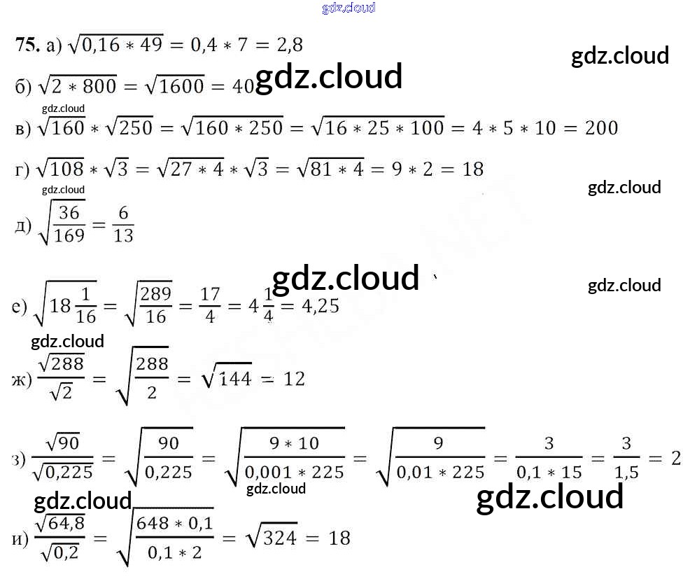 Ответ на задание 75 Учебник Алгебра за 8 (восьмой) класс Арефьева, Пирютко 2018 ФГОС онлайн и без номера телефона.
