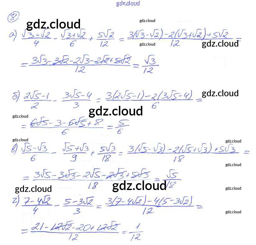 О-14. Преобразование выражений, содержащих квадратные корни Ответы к Обучающим работам по Алгебре 8 класс Дидактические материалы Евстафьева Просвещение
