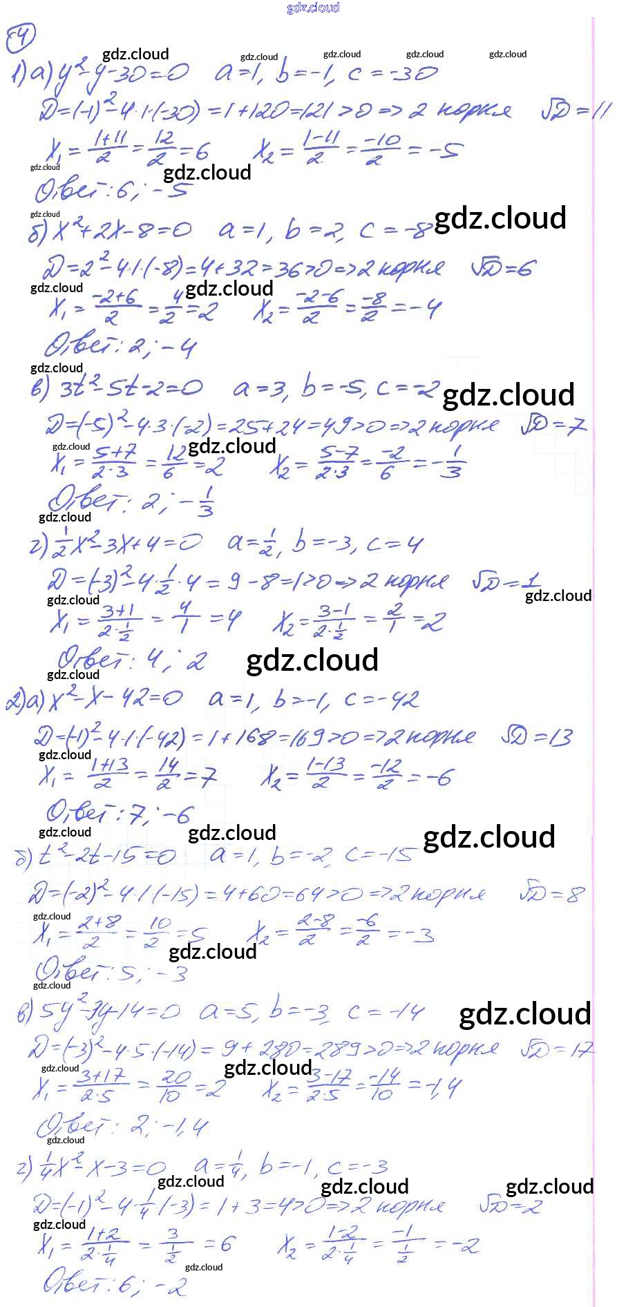 О-17. Решение квадратных уравнений по формуле корней Ответы к Обучающим работам по Алгебре 8 класс Дидактические материалы Евстафьева Просвещение