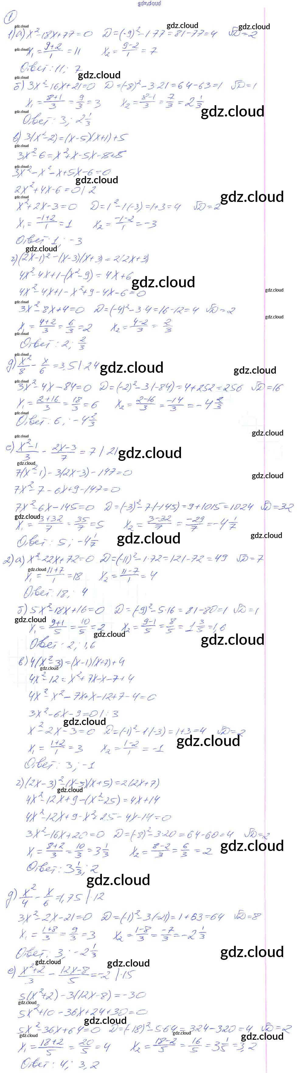 О-18. Вторая формула корней квадратного уравнения Ответы к Обучающим работам по Алгебре 8 класс Дидактические материалы Евстафьева Просвещение