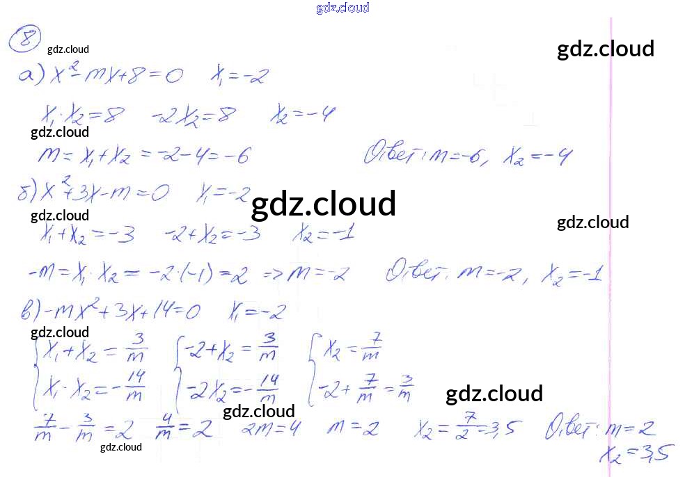 О-21. Теорема Виета Ответы к Обучающим работам по Алгебре 8 класс Дидактические материалы Евстафьева Просвещение