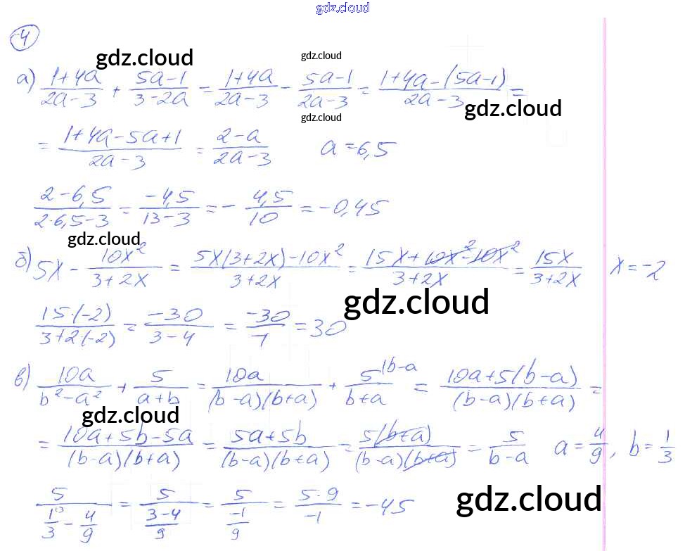 О-4. Сложение и вычитание алгебраических дробей Ответы к Обучающим работам по Алгебре 8 класс Дидактические материалы Евстафьева Просвещение
