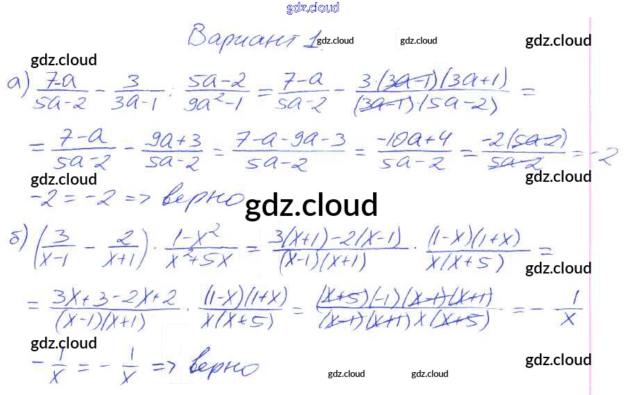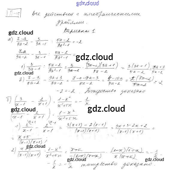 П-10. Все действия с алгебраическими дробями Ответы к Проверочным заданиям по Алгебре 8 класс Дидактические материалы Евстафьева Просвещение