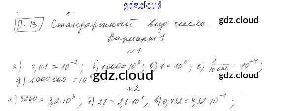 П-13. Стандартный вид числа Ответы к Проверочным заданиям по Алгебре 8 класс Дидактические материалы Евстафьева Просвещение