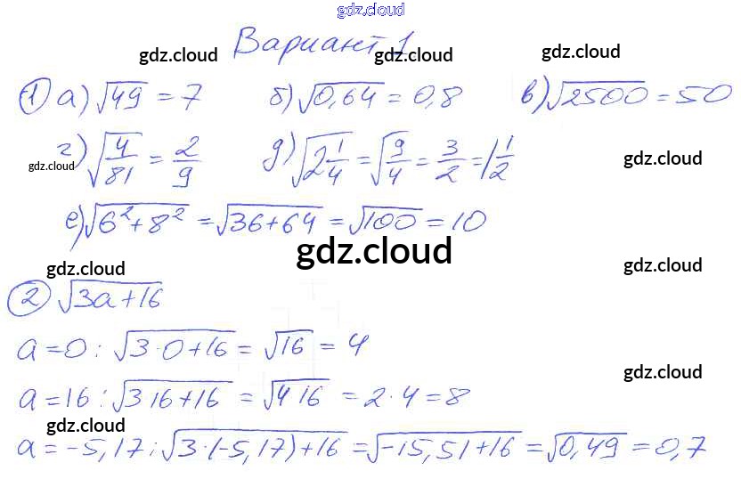 Ответ на задание Вариант 1 Дидактические материалы Алгебра за 8 (восьмой) класс Евстафьева, Карп 2017