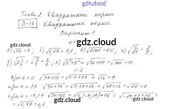 П-16. Квадратные корни Ответы к Проверочным заданиям по Алгебре 8 класс Дидактические материалы Евстафьева Просвещение