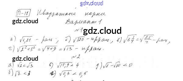 П-18. Квадратные корни Ответы к Проверочным заданиям по Алгебре 8 класс Дидактические материалы Евстафьева Просвещение