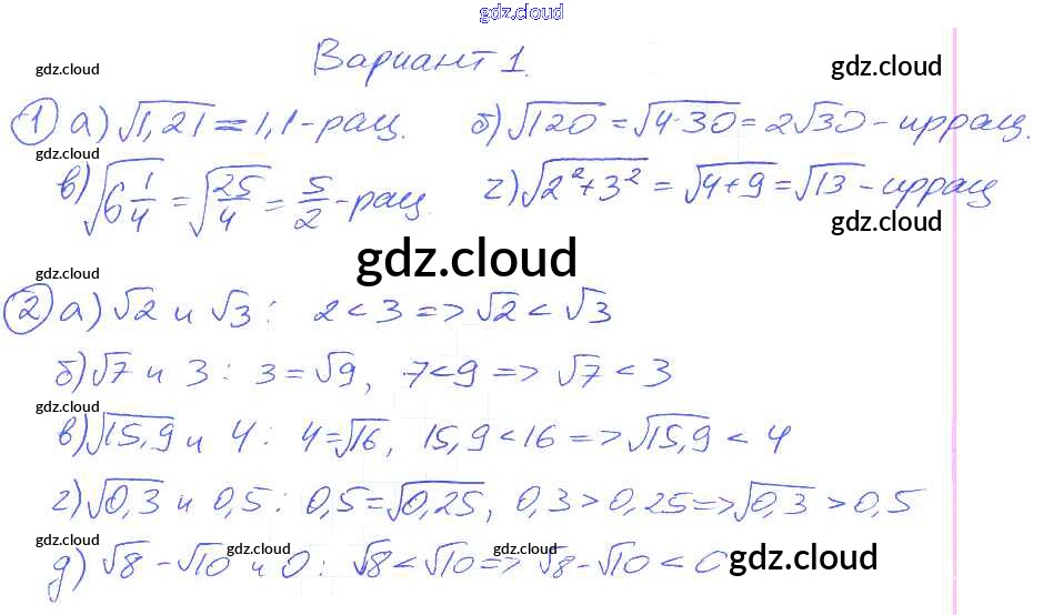 Ответ на задание Вариант 1 Дидактические материалы Алгебра за 8 (восьмой) класс Евстафьева, Карп 2017