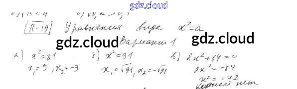 П-19. Уравнения вида х2 = a Ответы к Проверочным заданиям по Алгебре 8 класс Дидактические материалы Евстафьева Просвещение