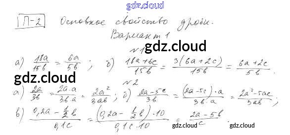 П-2. Основное свойство дроби Ответы к Проверочным заданиям по Алгебре 8 класс Дидактические материалы Евстафьева Просвещение