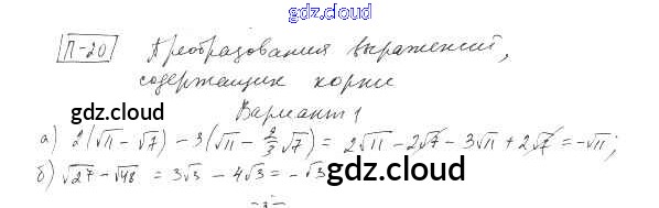 П-20. Неполные квадратные уравнения Ответы к Проверочным заданиям по Алгебре 8 класс Дидактические материалы Евстафьева Просвещение