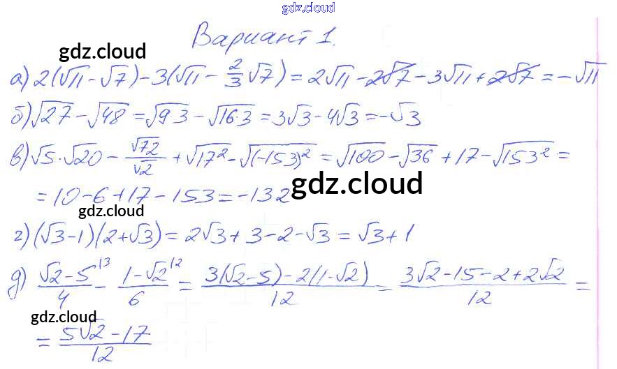 Ответ на задание Вариант 1 Дидактические материалы Алгебра за 8 (восьмой) класс Евстафьева, Карп 2017