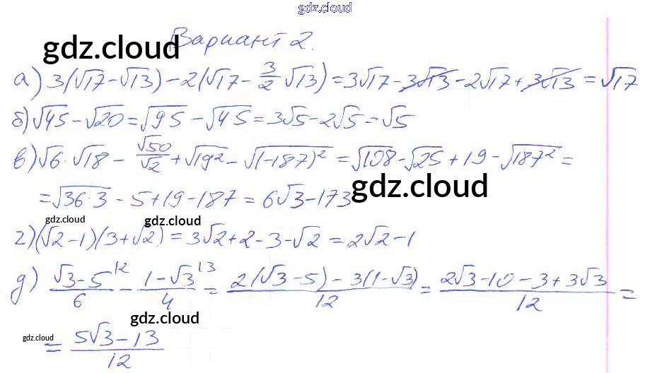 Ответ на задание Вариант 2 Дидактические материалы Алгебра за 8 (восьмой) класс Евстафьева, Карп 2017