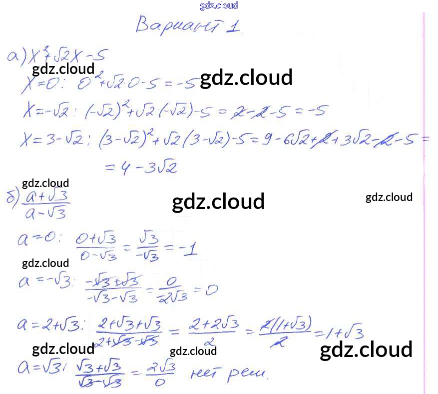 Ответ на задание Вариант 1 Дидактические материалы Алгебра за 8 (восьмой) класс Евстафьева, Карп 2017