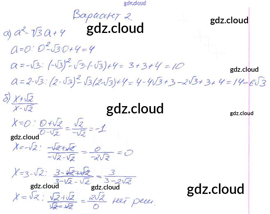 Ответ на задание Вариант 2 Дидактические материалы Алгебра за 8 (восьмой) класс Евстафьева, Карп 2017