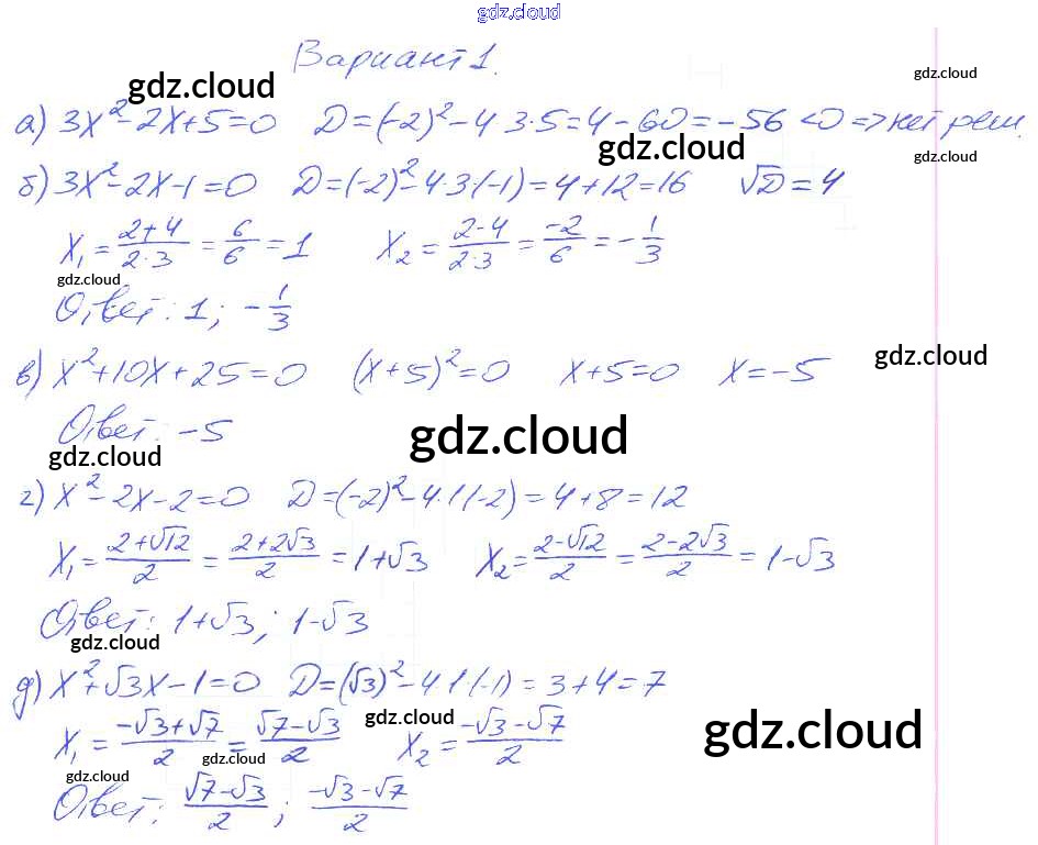 Ответ на задание Вариант 1 Дидактические материалы Алгебра за 8 (восьмой) класс Евстафьева, Карп 2017