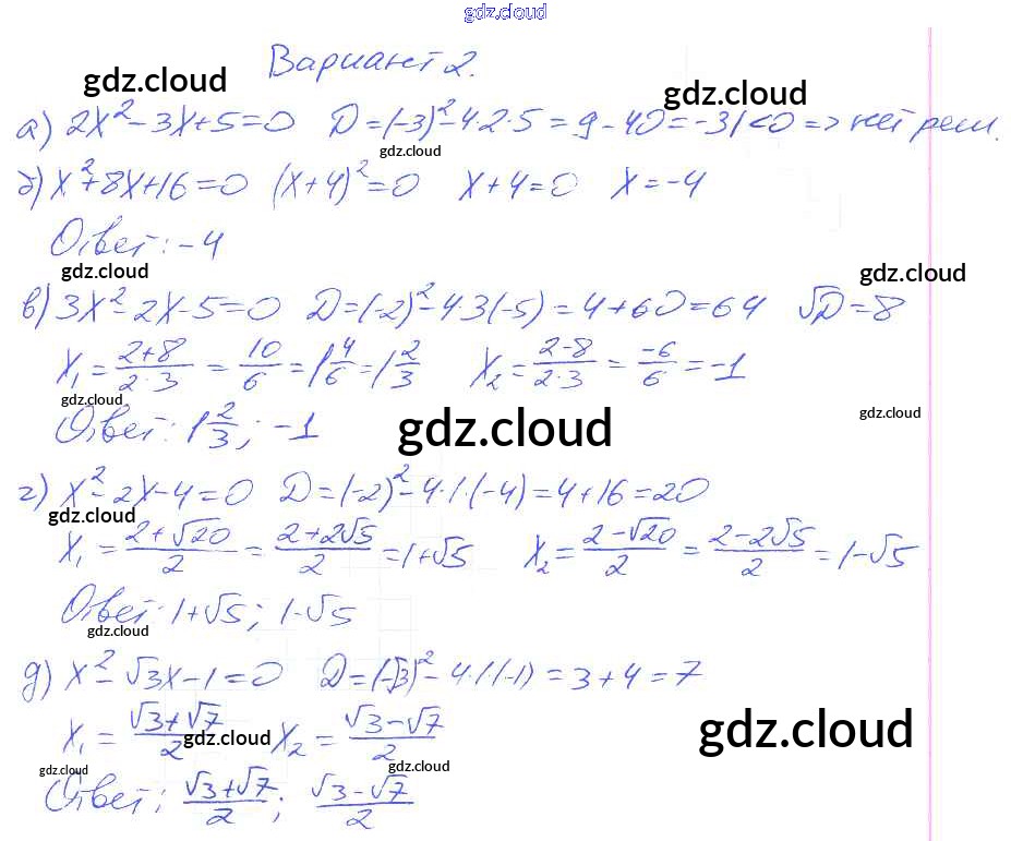 Ответ на задание Вариант 2 Дидактические материалы Алгебра за 8 (восьмой) класс Евстафьева, Карп 2017