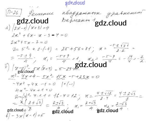 П-26. Системы уравнений. Решение систем уравнений способом сложения Ответы к Проверочным заданиям по Алгебре 8 класс Дидактические материалы Евстафьева Просвещение
