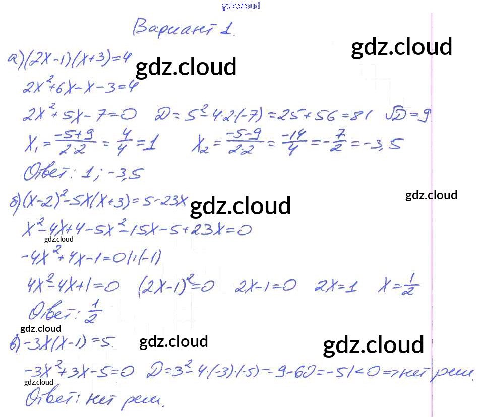 Ответ на задание Вариант 1 Дидактические материалы Алгебра за 8 (восьмой) класс Евстафьева, Карп 2017
