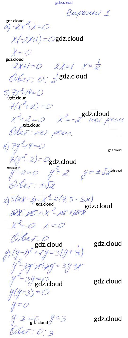 Ответ на задание Вариант 1 Дидактические материалы Алгебра за 8 (восьмой) класс Евстафьева, Карп 2017