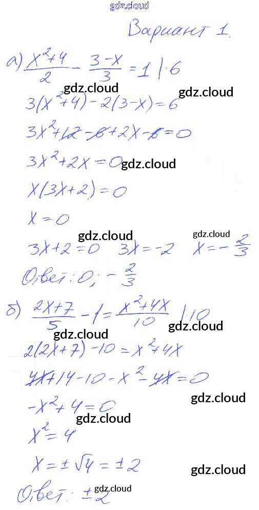 Ответ на задание Вариант 1 Дидактические материалы Алгебра за 8 (восьмой) класс Евстафьева, Карп 2017