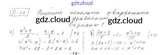П-31. Решение неполных квадратных уравнений Ответы к Проверочным заданиям по Алгебре 8 класс Дидактические материалы Евстафьева Просвещение