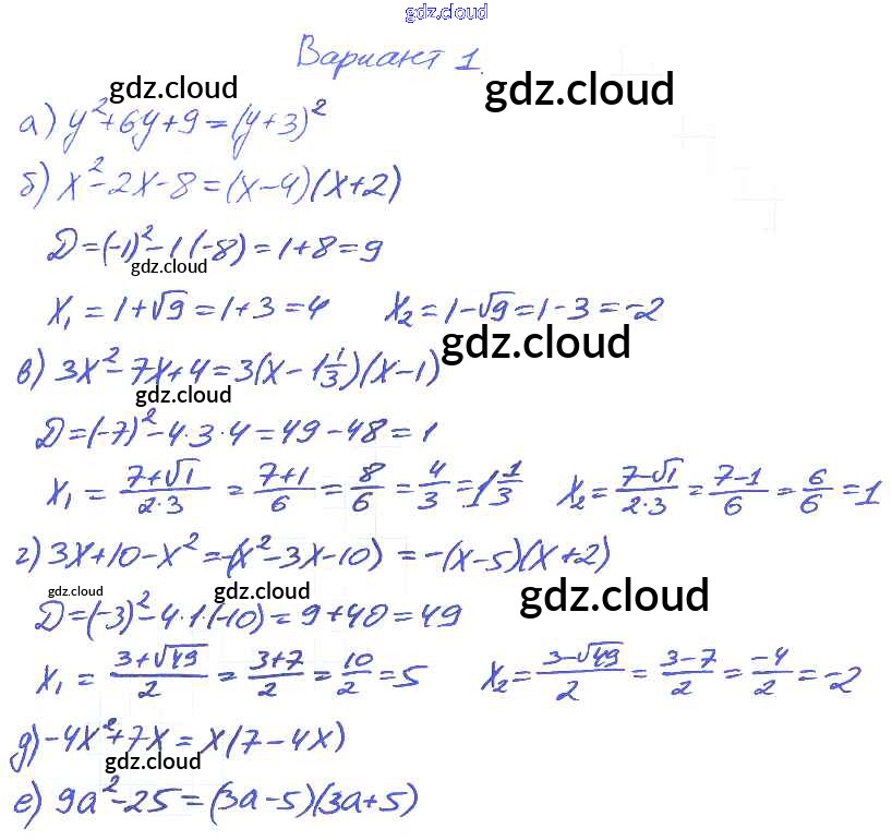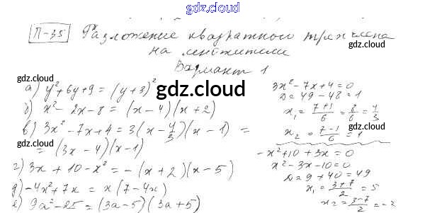 П-35. Разложение квадратного трехчлена на множители Ответы к Проверочным заданиям по Алгебре 8 класс Дидактические материалы Евстафьева Просвещение