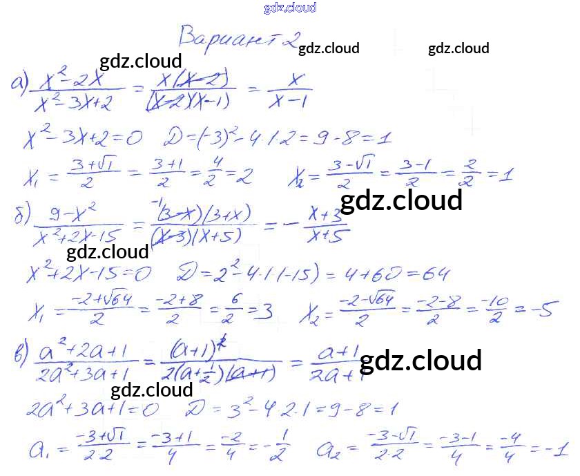 Ответ на задание Вариант 2 Дидактические материалы Алгебра за 8 (восьмой) класс Евстафьева, Карп 2017