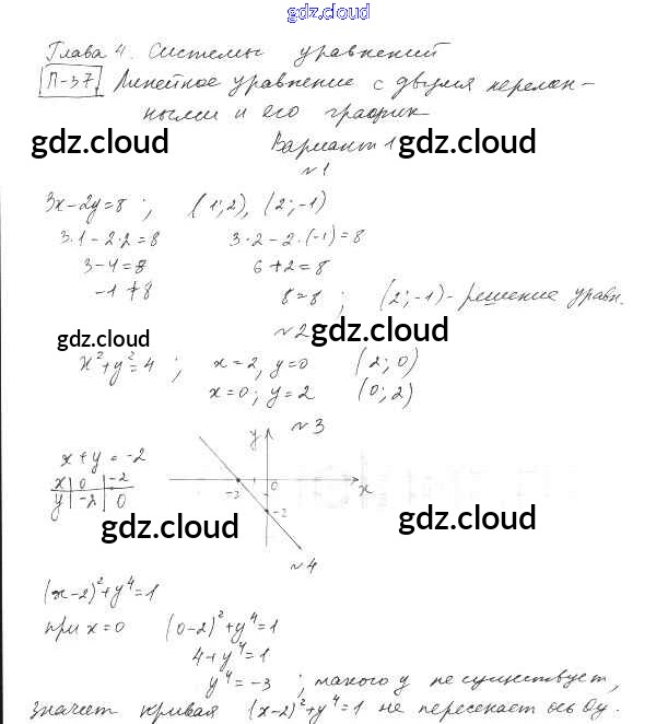 П-37. Линейное уравнение с двумя переменными и его график Ответы к Проверочным заданиям по Алгебре 8 класс Дидактические материалы Евстафьева Просвещение