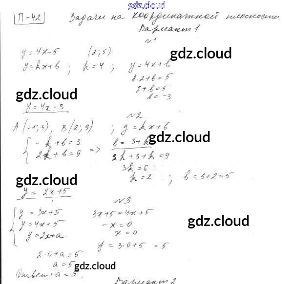 П-42. Задачи на координатной плоскости Ответы к Проверочным заданиям по Алгебре 8 класс Дидактические материалы Евстафьева Просвещение