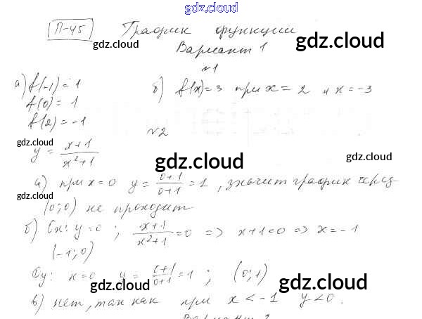 П-45. График функции Ответы к Проверочным заданиям по Алгебре 8 класс Дидактические материалы Евстафьева Просвещение