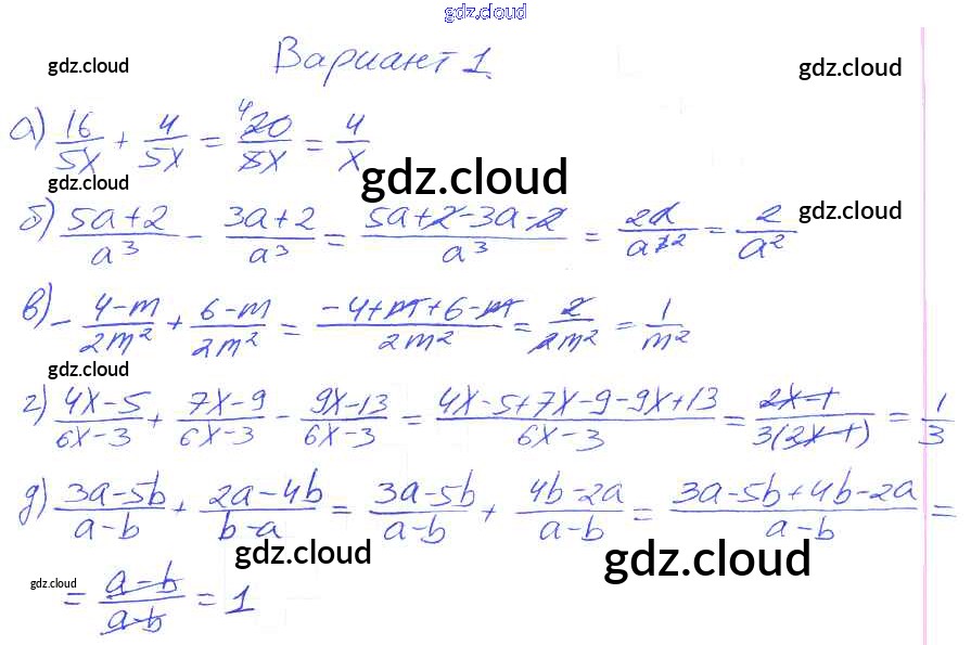 Ответ на задание Вариант 1 Дидактические материалы Алгебра за 8 (восьмой) класс Евстафьева, Карп 2017