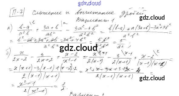 П-7. Сложение и вычитание дробей Ответы к Проверочным заданиям по Алгебре 8 класс Дидактические материалы Евстафьева Просвещение