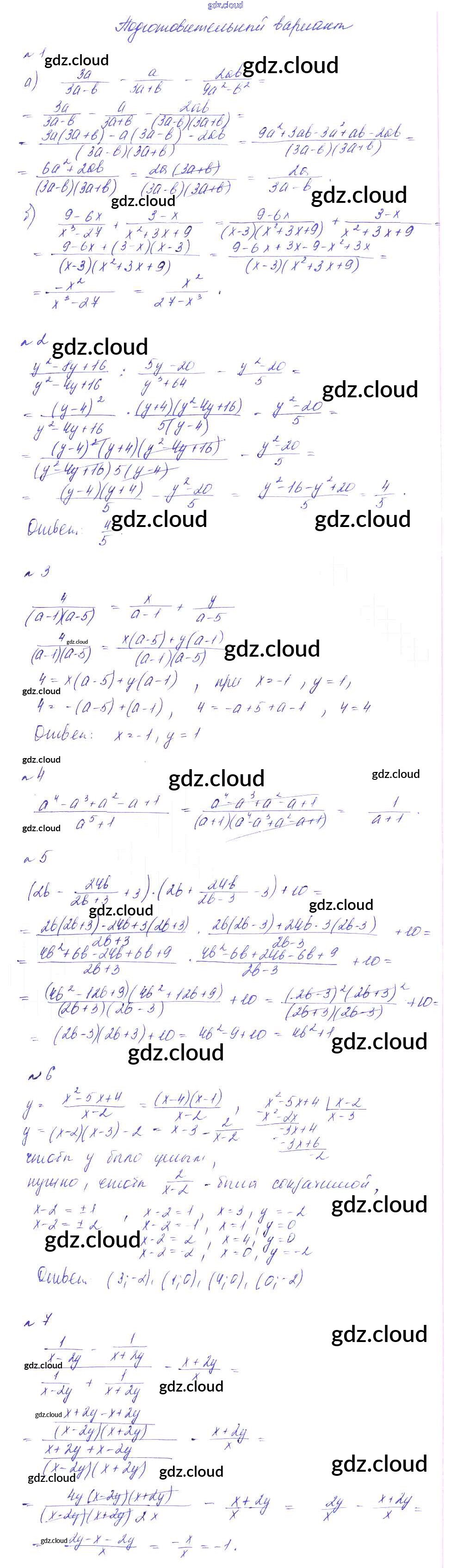 КР-1. Дроби Ответы к Контрольным работам по Алгебре 8 класс Дидактические материалы Феоктистов Мнемозина