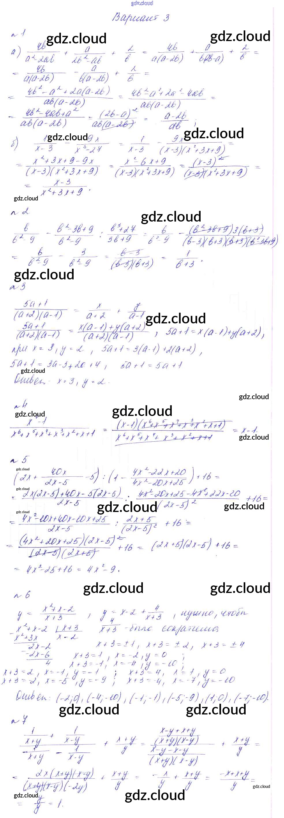 КР-1. Дроби Ответы к Контрольным работам по Алгебре 8 класс Дидактические материалы Феоктистов Мнемозина