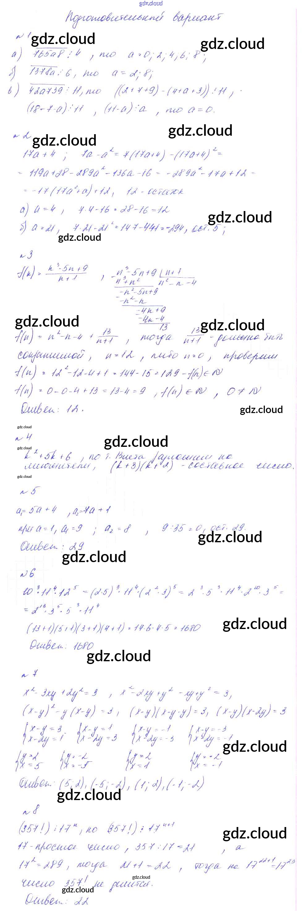 КР-2. Целые числа. Делимость чисел Ответы к Контрольным работам по Алгебре 8 класс Дидактические материалы Феоктистов Мнемозина