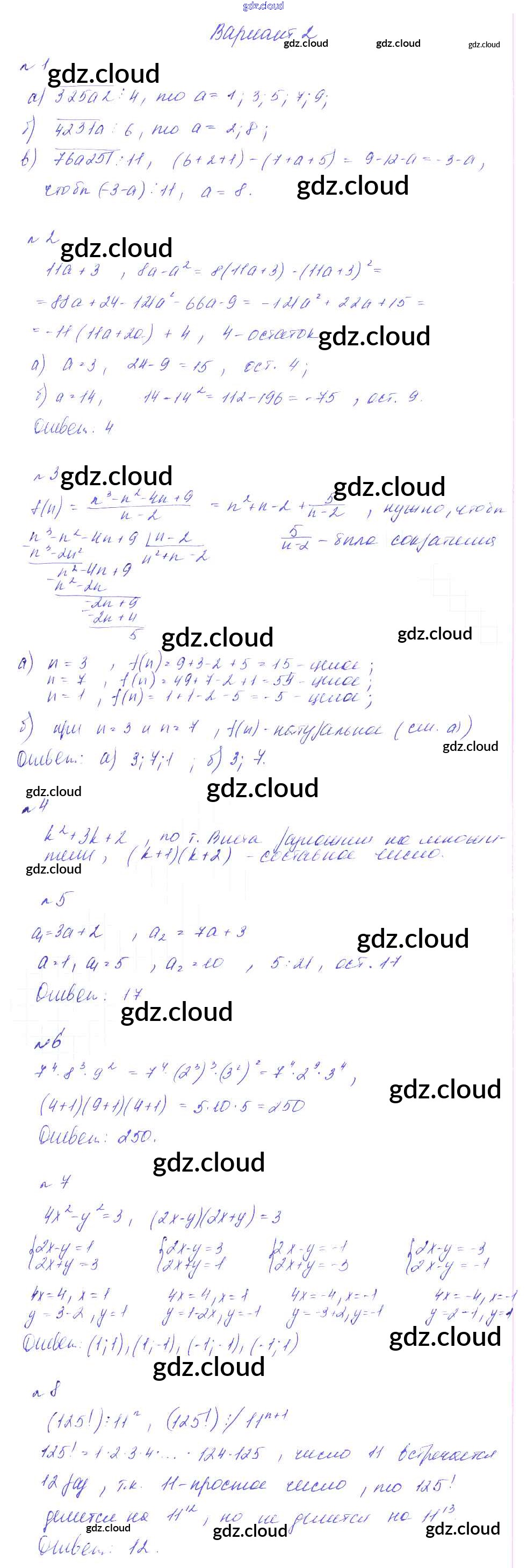 КР-2. Целые числа. Делимость чисел Ответы к Контрольным работам по Алгебре 8 класс Дидактические материалы Феоктистов Мнемозина