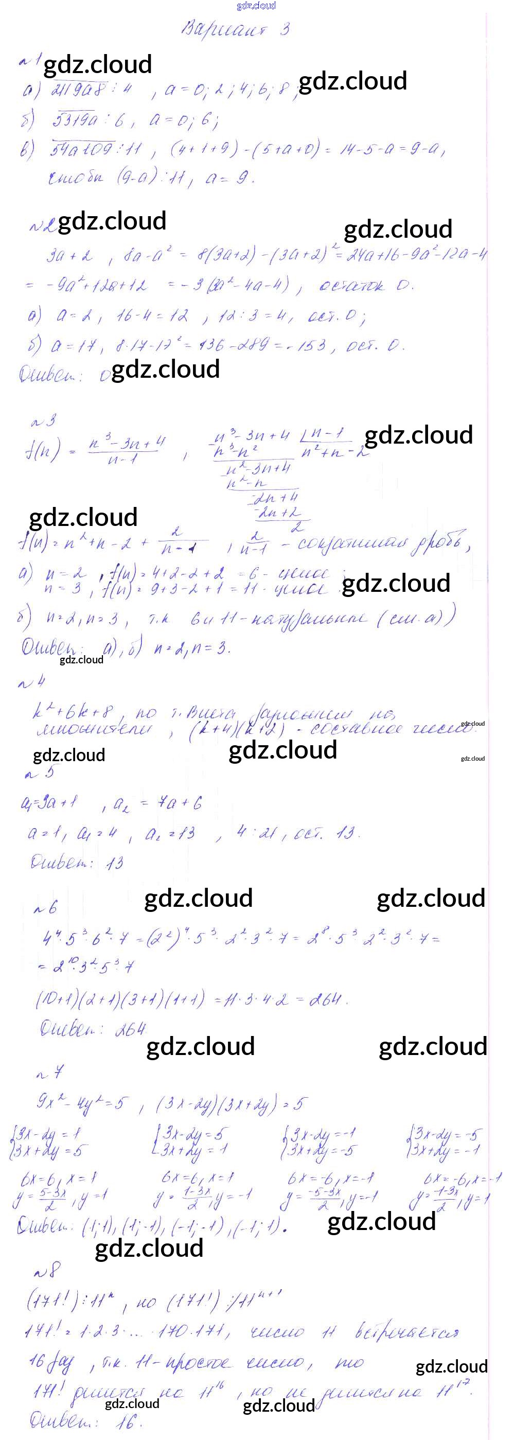 КР-2. Целые числа. Делимость чисел Ответы к Контрольным работам по Алгебре 8 класс Дидактические материалы Феоктистов Мнемозина